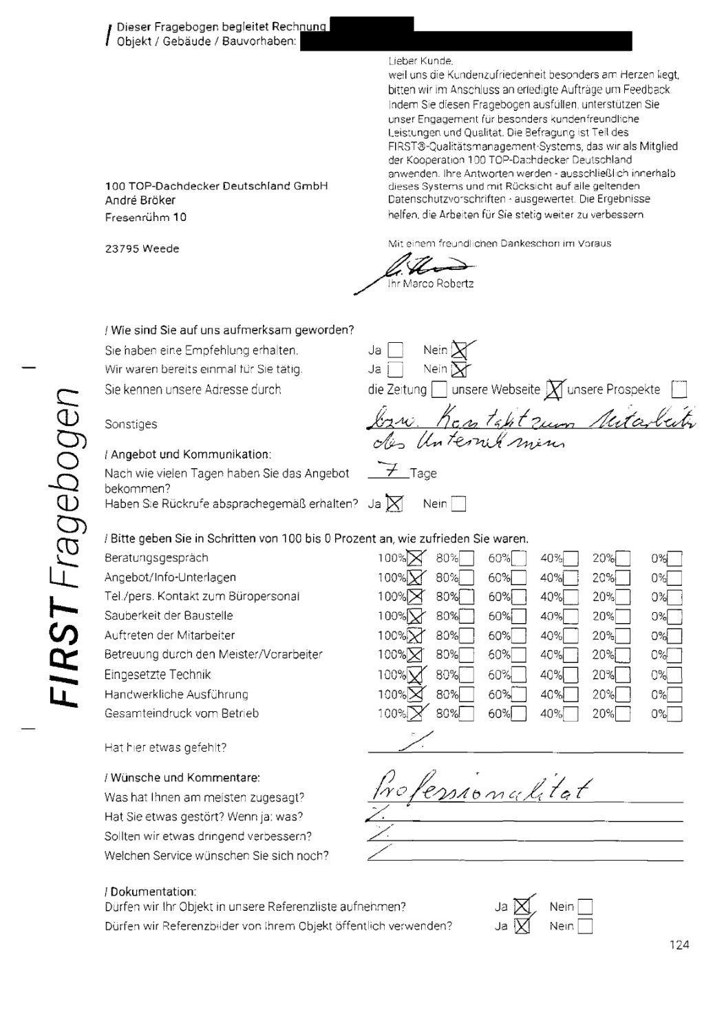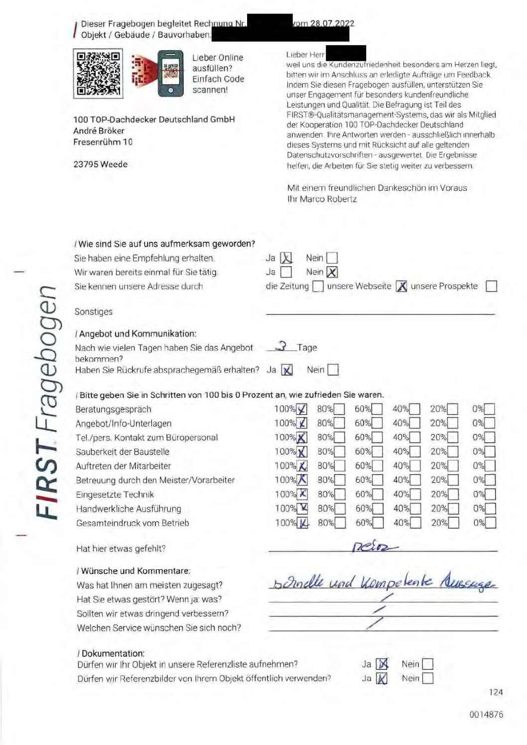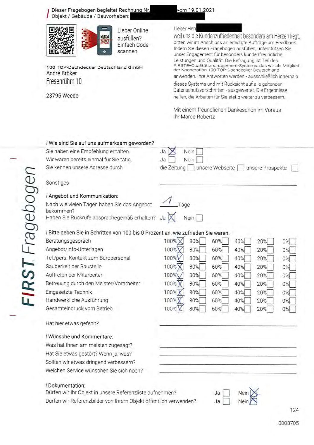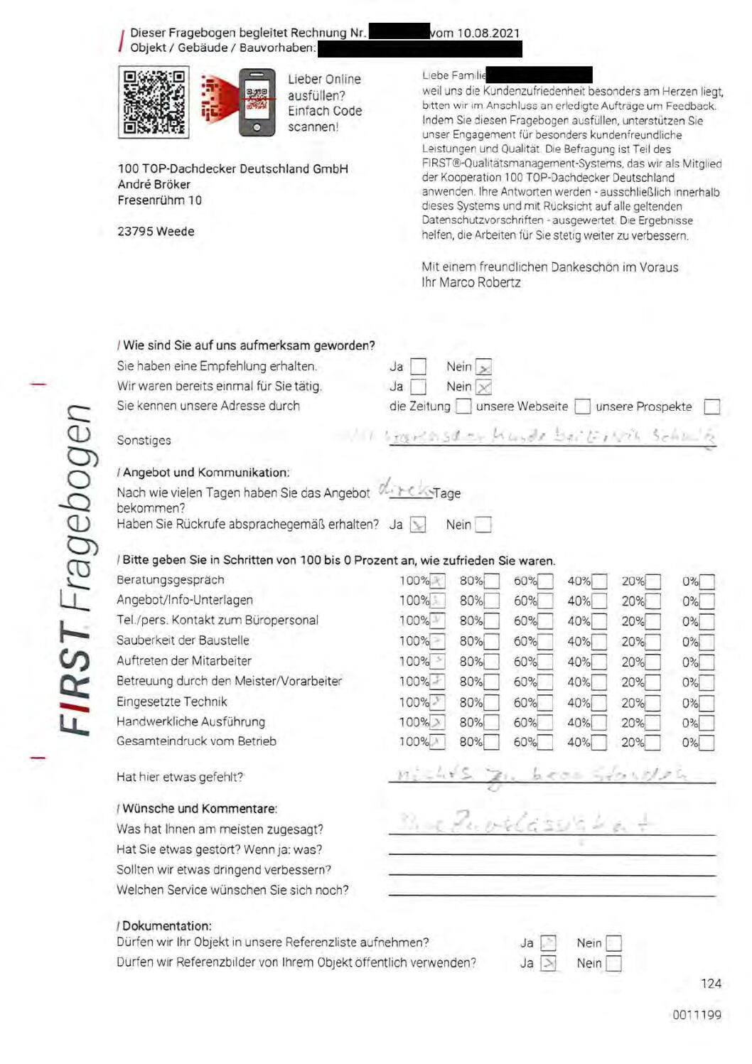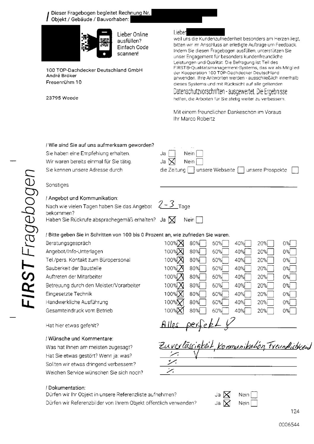P.S. Wir haben ausnahmslos jeden Fragebogen hochgeladen, den Kunden beantwortet an die 100 Top Dachdecker Deutschland GmbH gesendet haben.