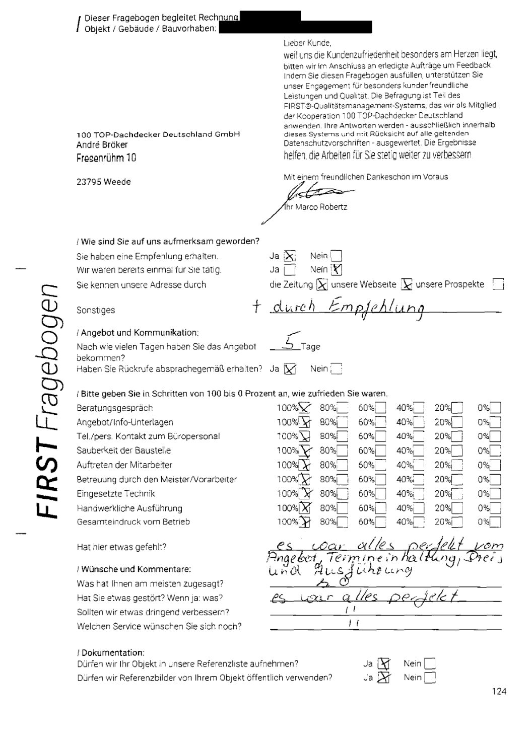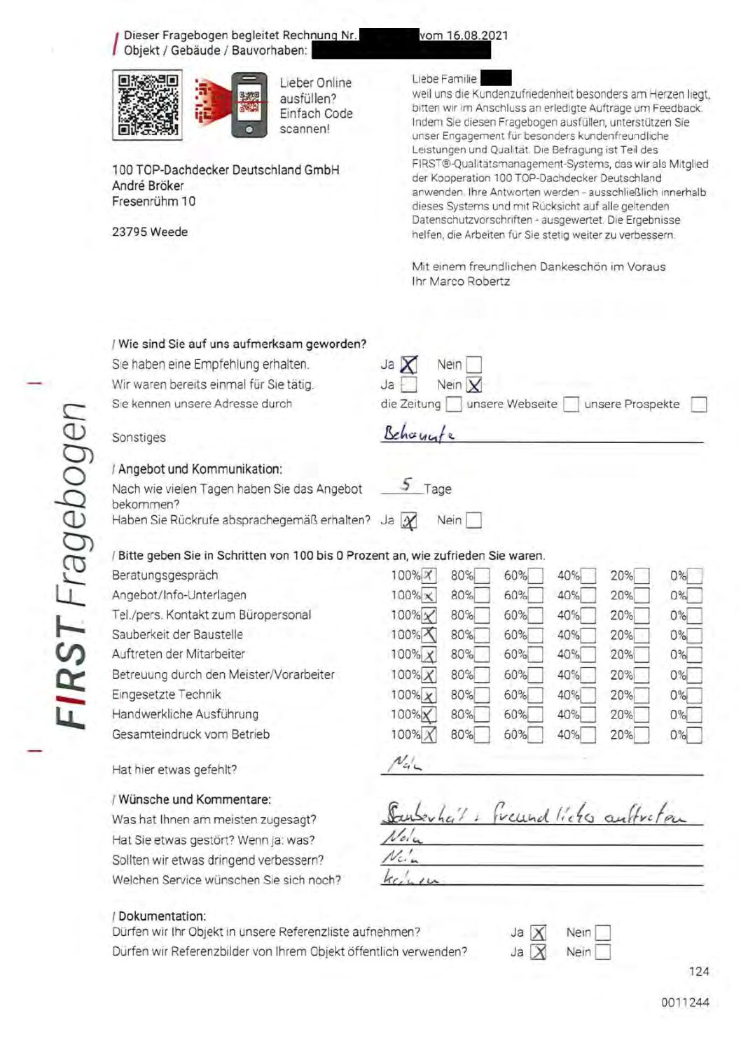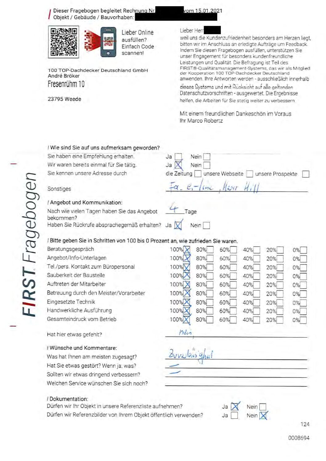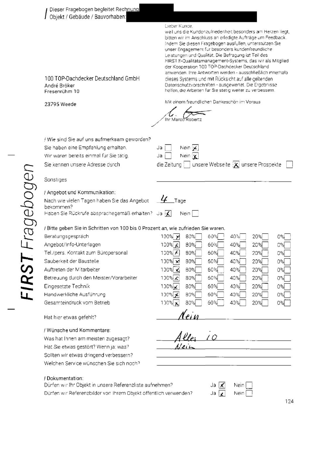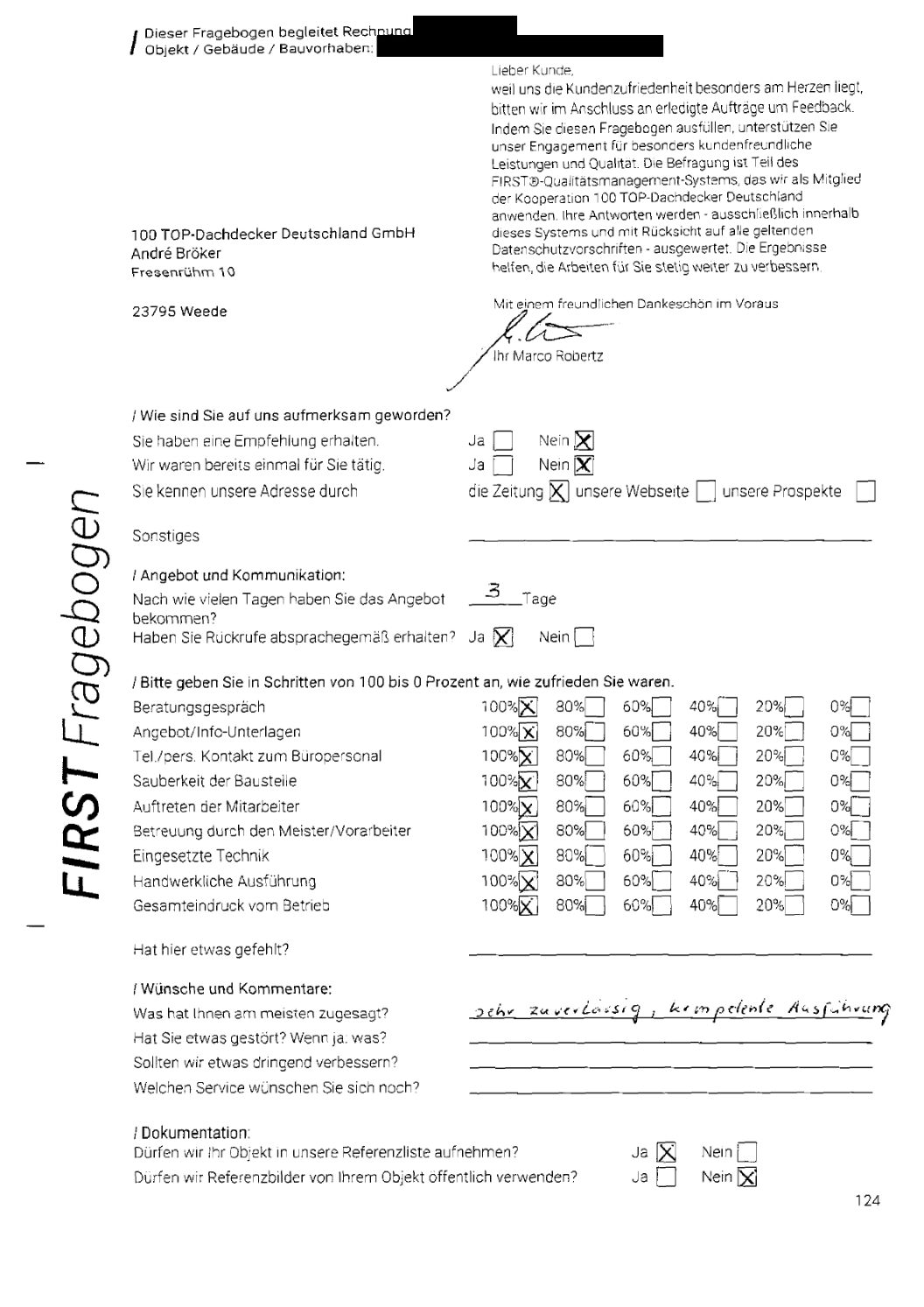 P.S. Wir haben ausnahmslos jeden Fragebogen hochgeladen, den Kunden beantwortet an die 100 Top Dachdecker Deutschland GmbH gesendet haben.