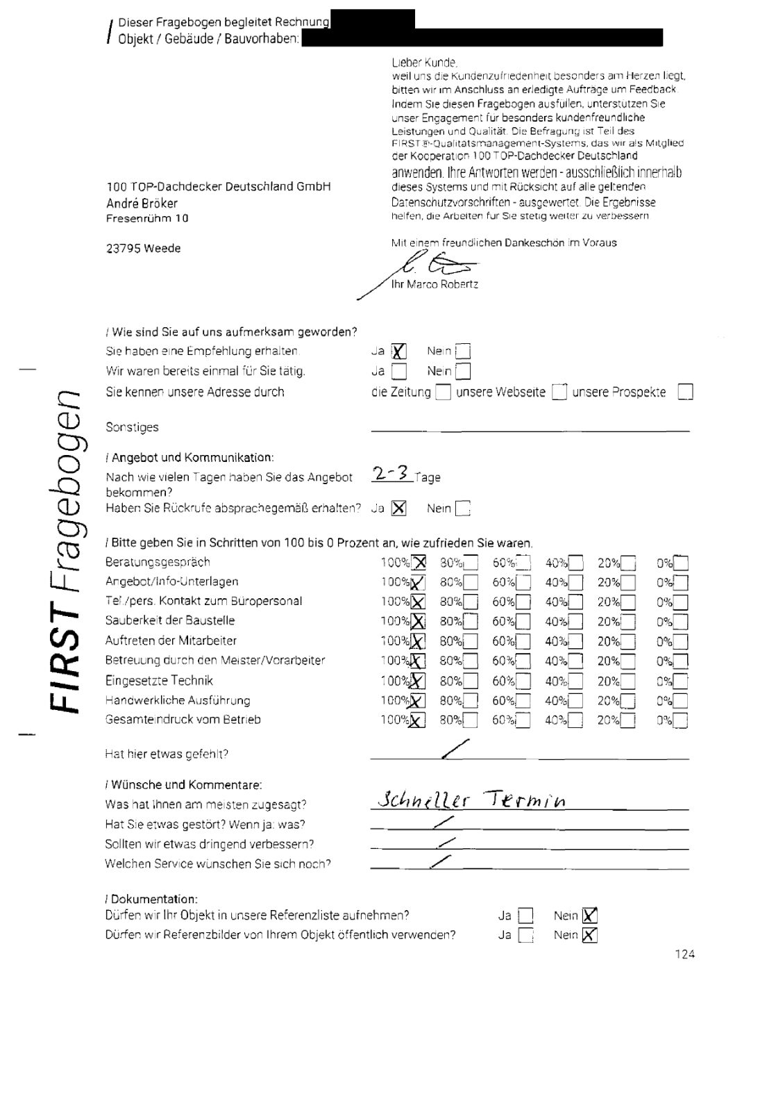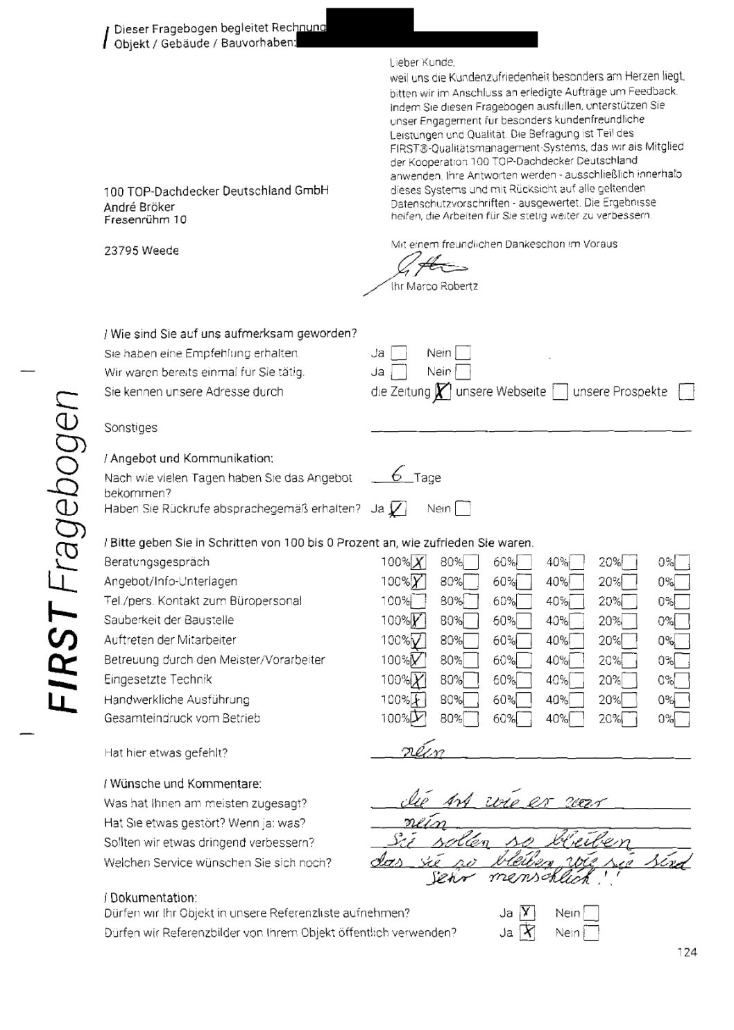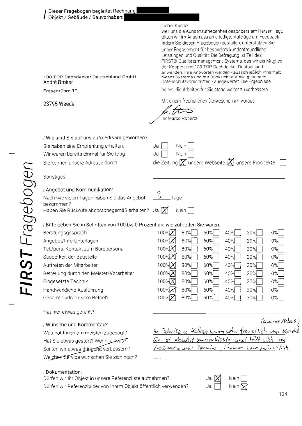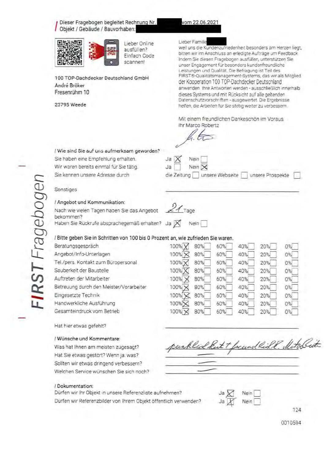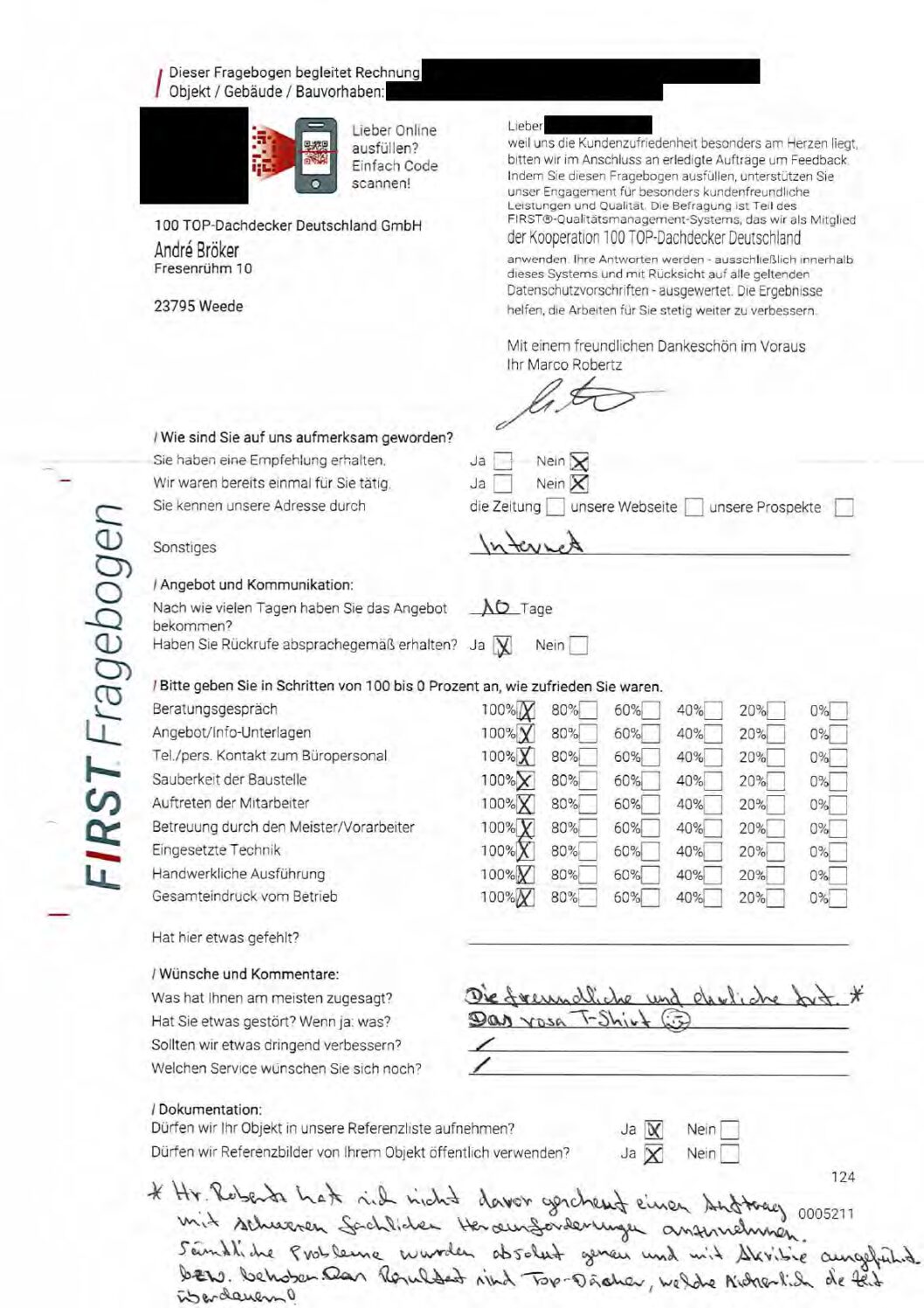 P.S. Wir haben ausnahmslos jeden Fragebogen hochgeladen, den Kunden beantwortet an die 100 Top Dachdecker Deutschland GmbH gesendet haben.