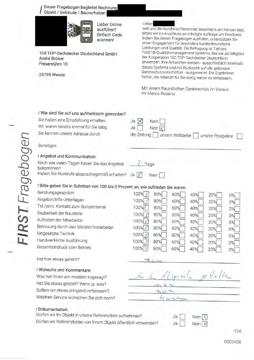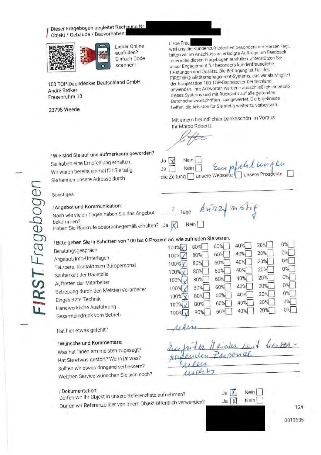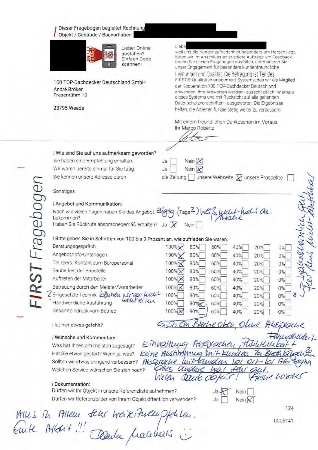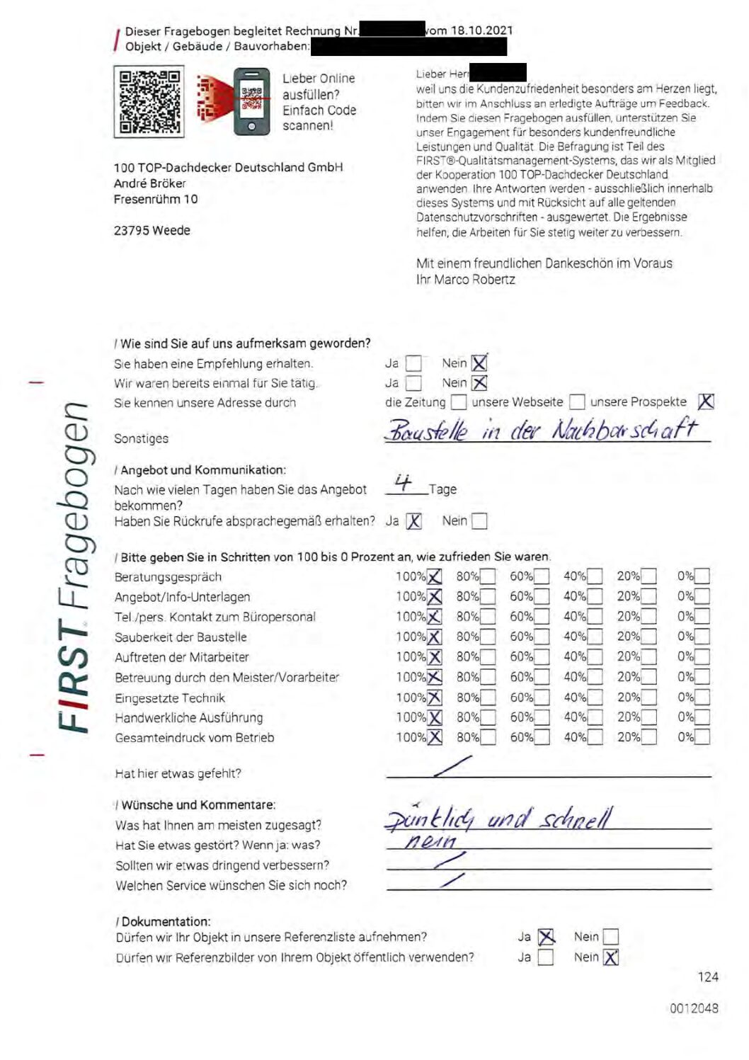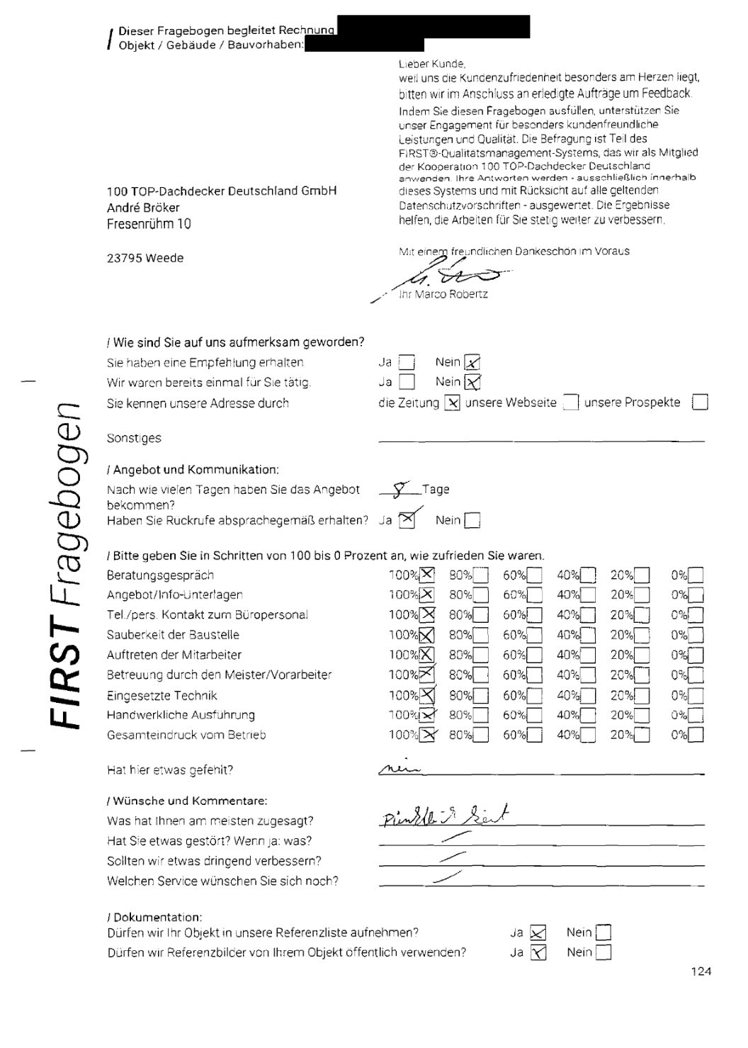 P.S. Wir haben ausnahmslos jeden Fragebogen hochgeladen, den Kunden beantwortet an die 100 Top Dachdecker Deutschland GmbH gesendet haben.