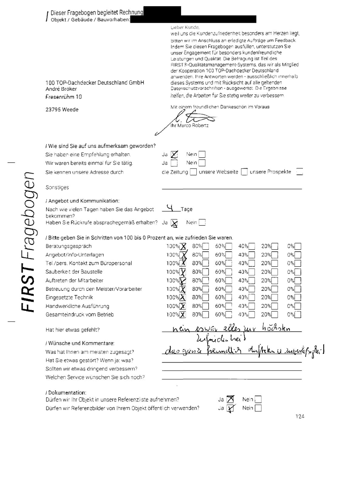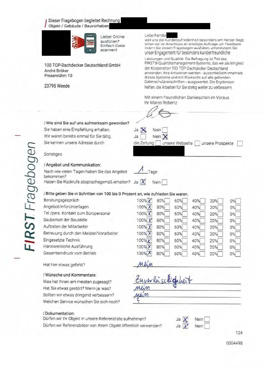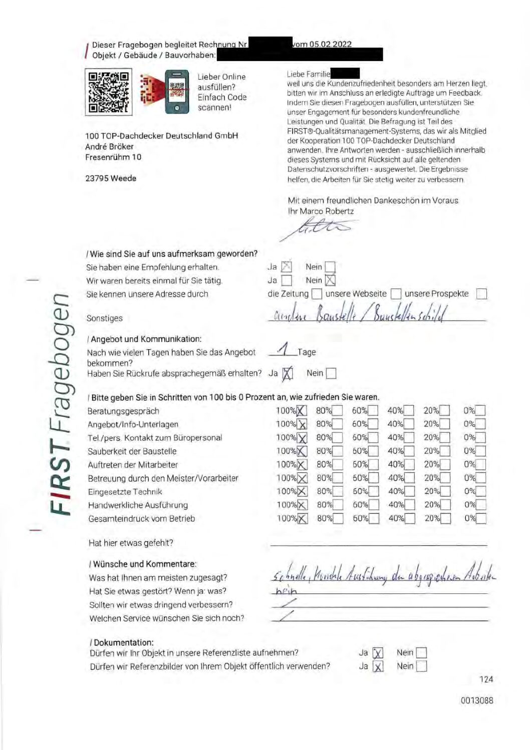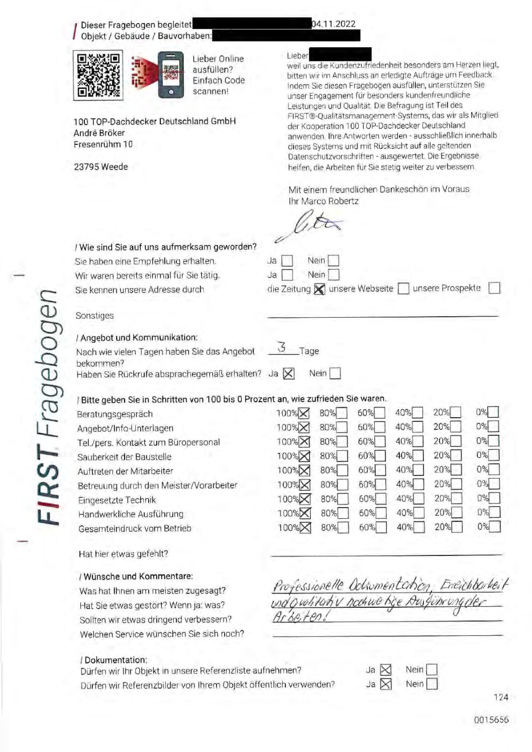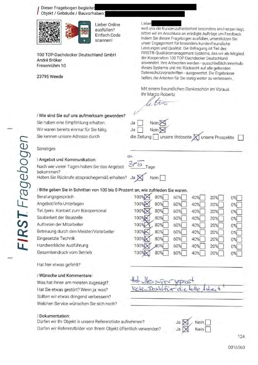 P.S. Wir haben ausnahmslos jeden Fragebogen hochgeladen, den Kunden beantwortet an die 100 Top Dachdecker Deutschland GmbH gesendet haben.