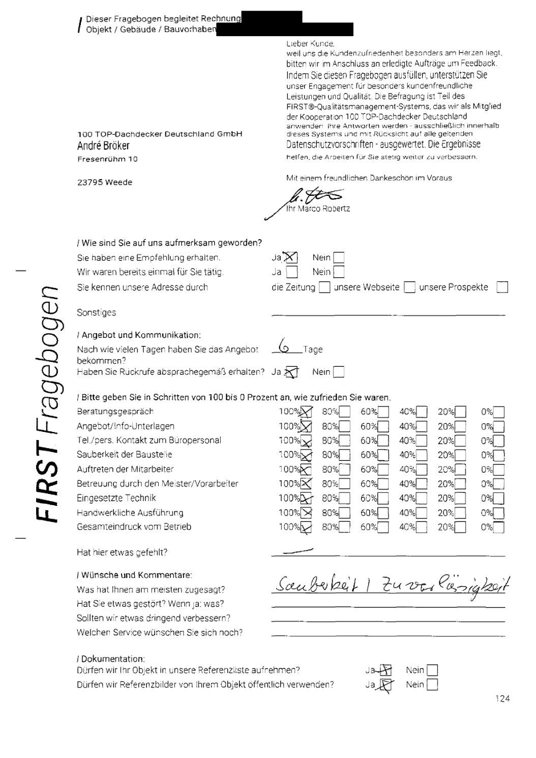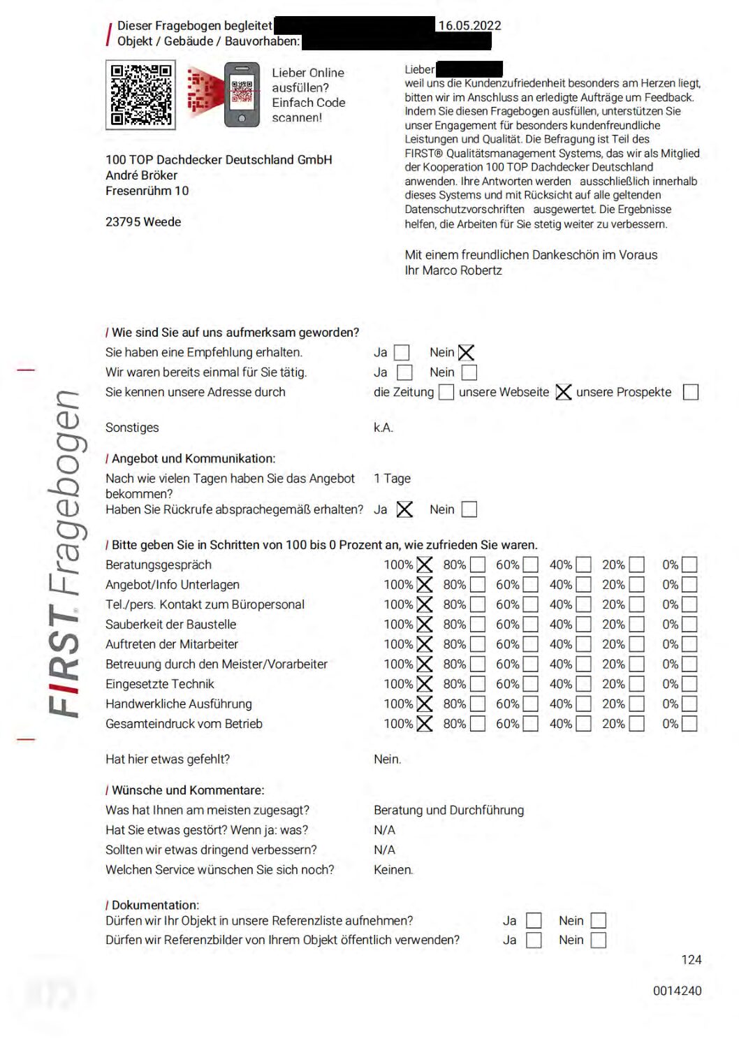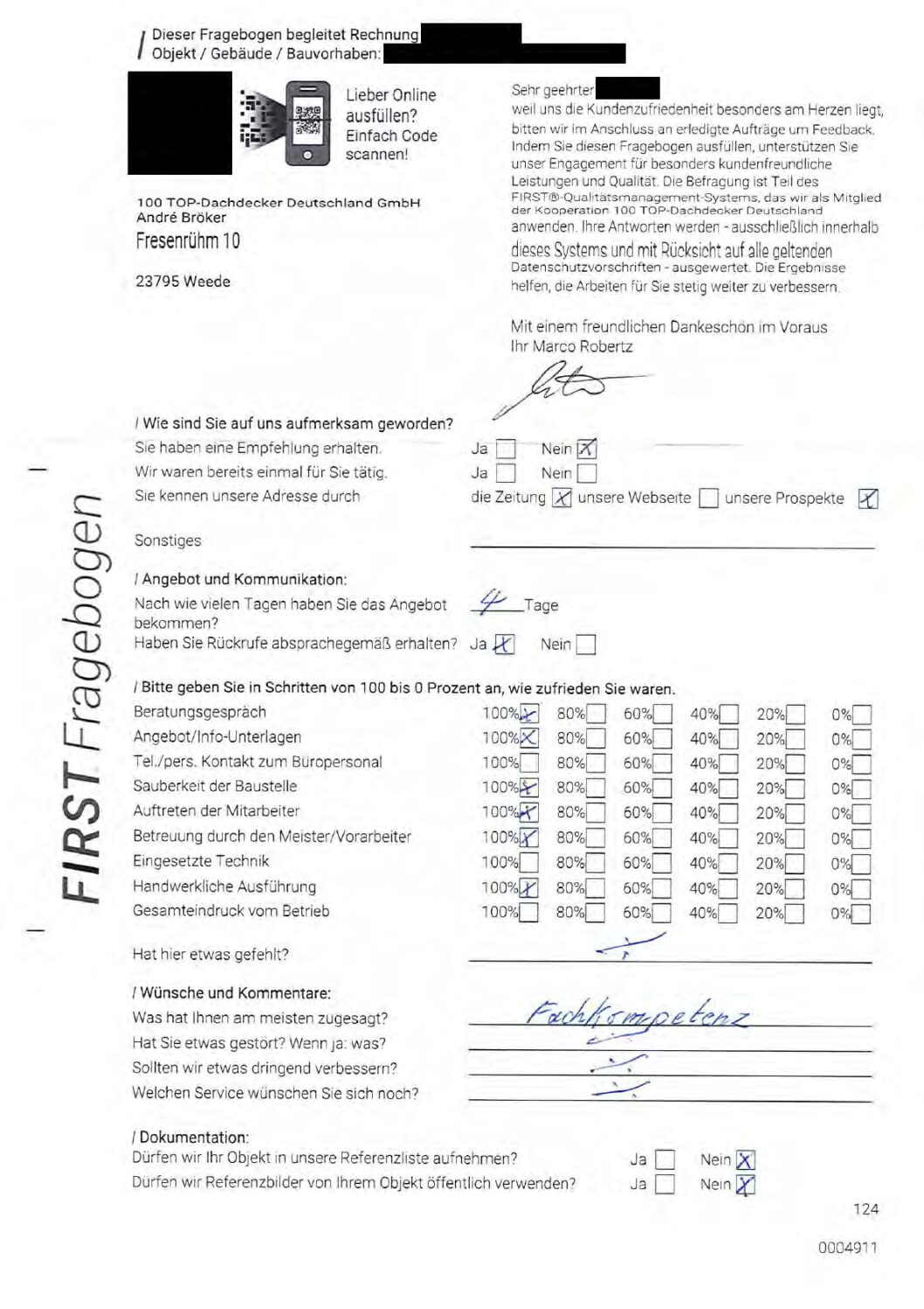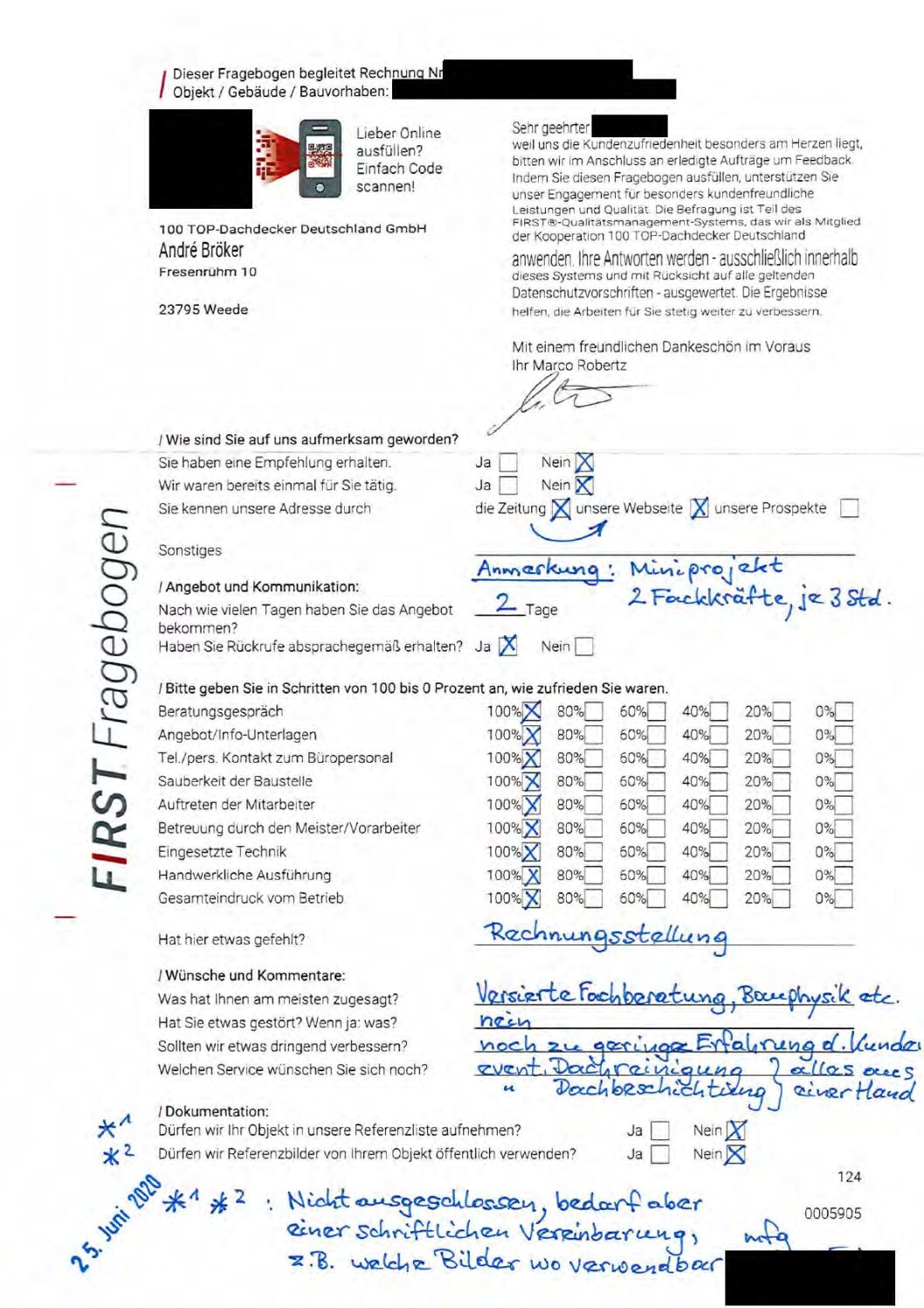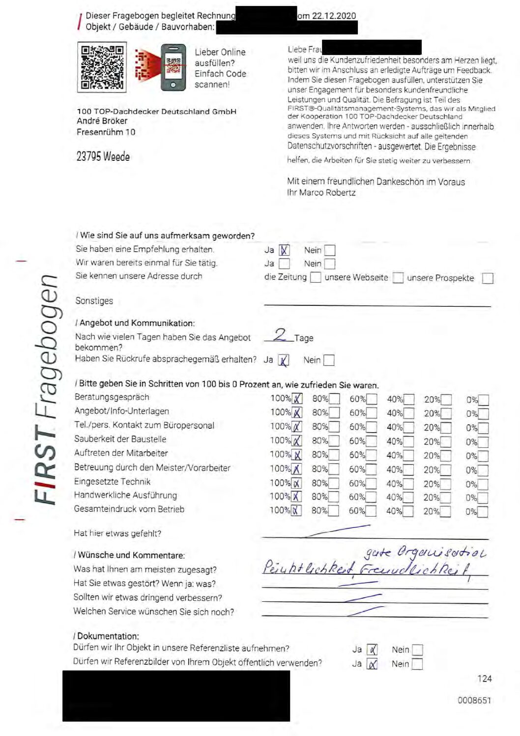 P.S. Wir haben ausnahmslos jeden Fragebogen hochgeladen, den Kunden beantwortet an die 100 Top Dachdecker Deutschland GmbH gesendet haben.