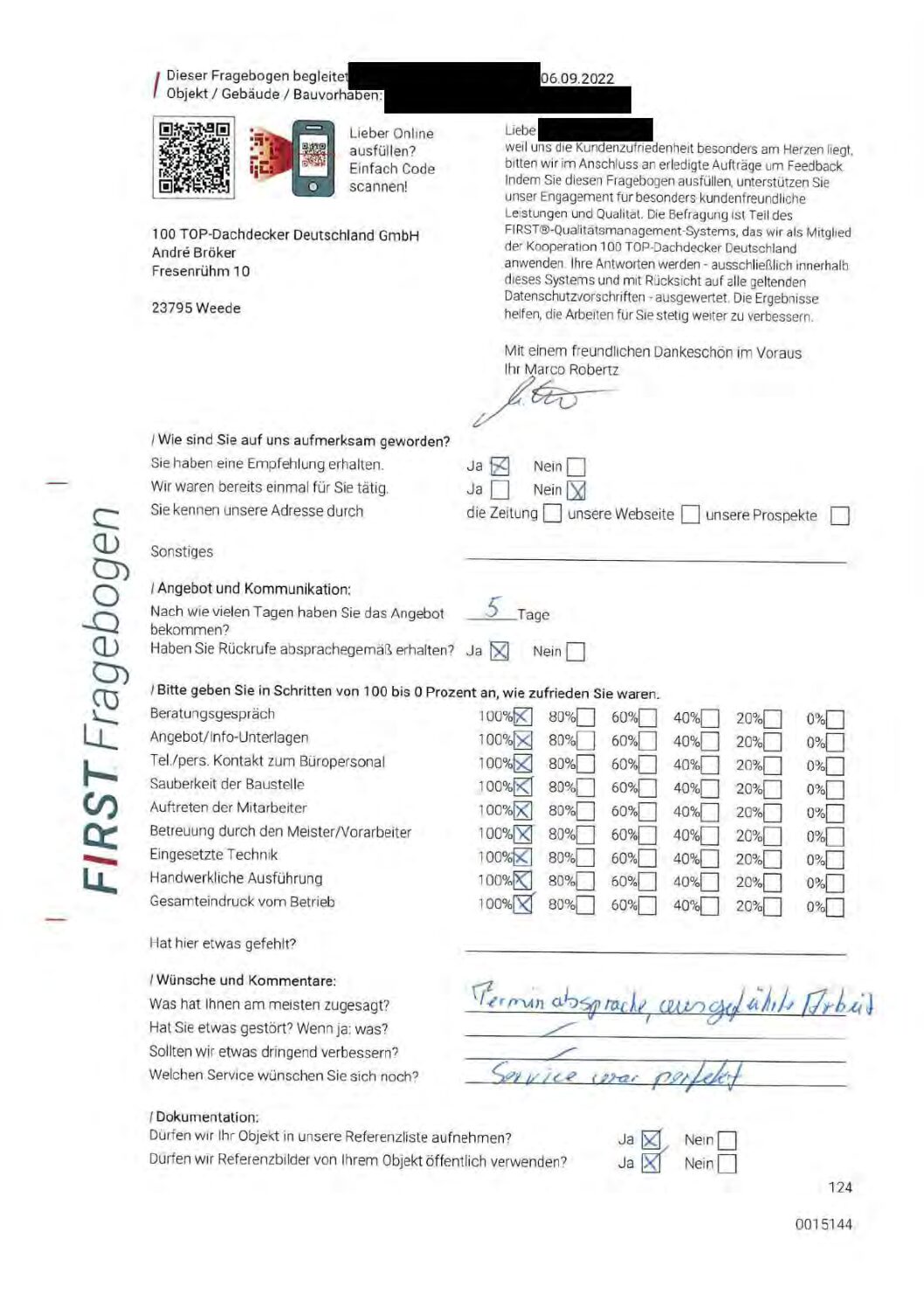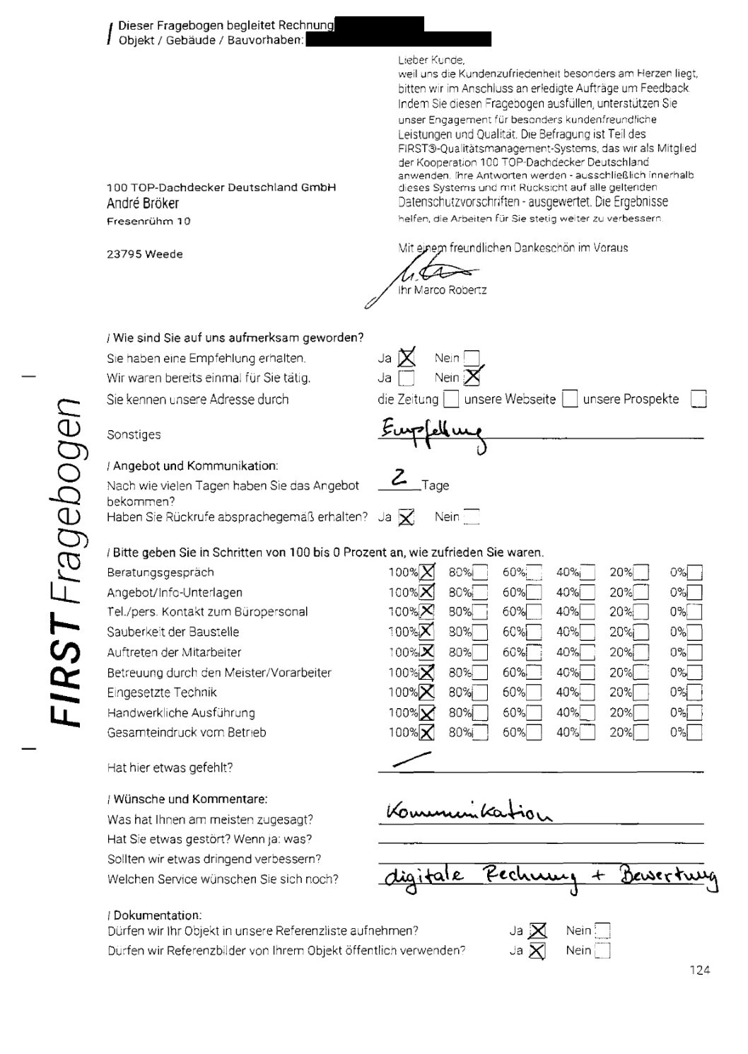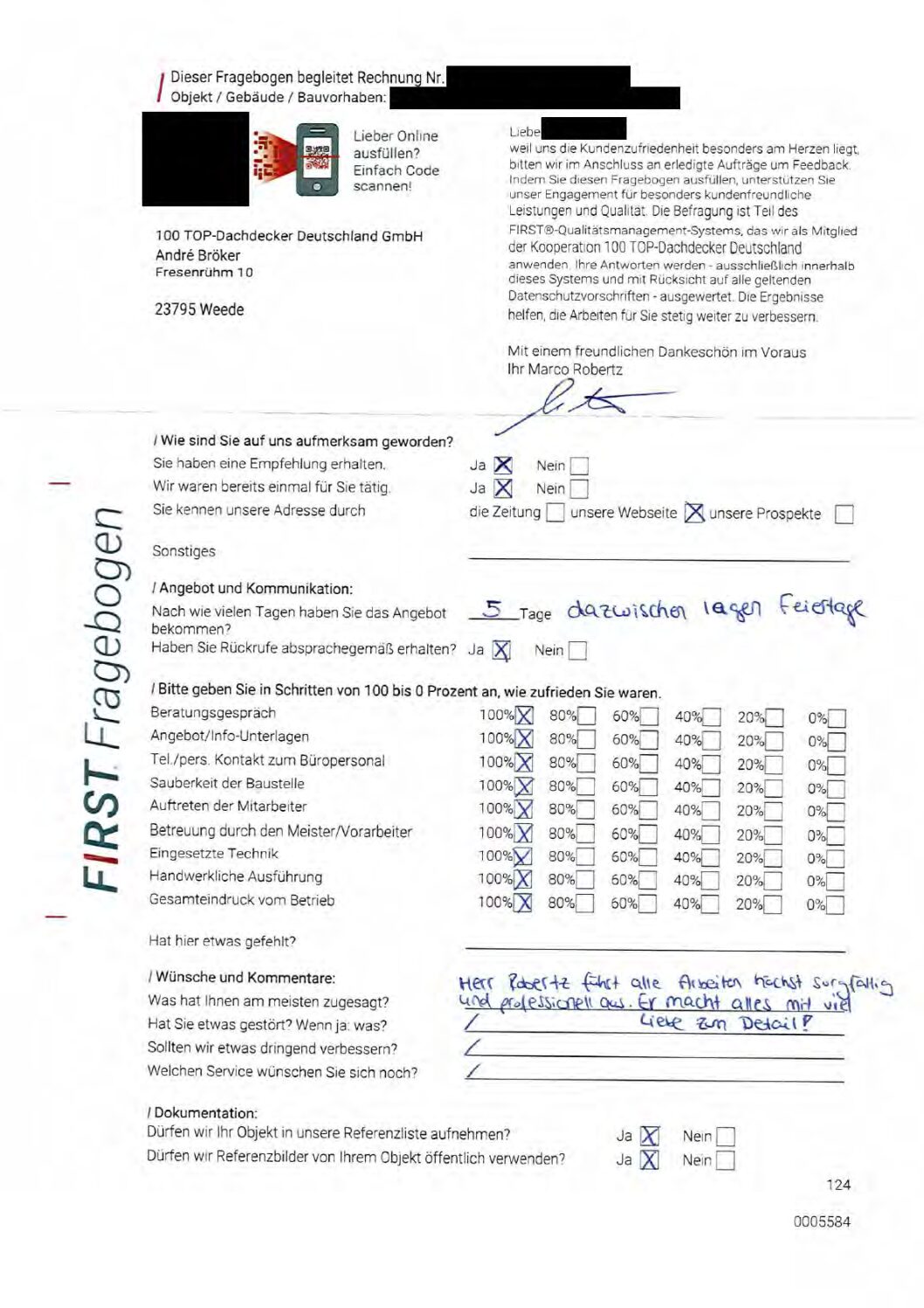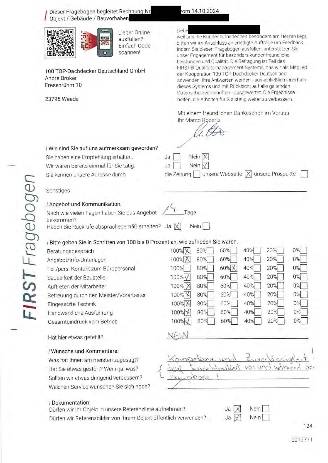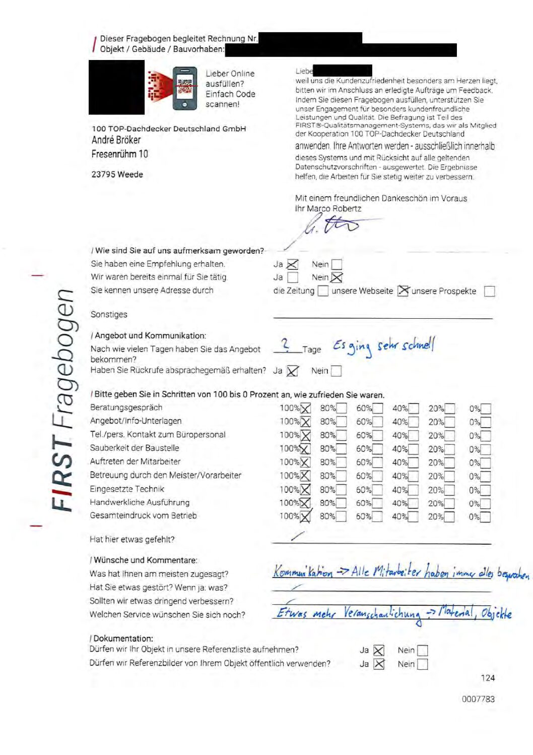 P.S. Wir haben ausnahmslos jeden Fragebogen hochgeladen, den Kunden beantwortet an die 100 Top Dachdecker Deutschland GmbH gesendet haben.