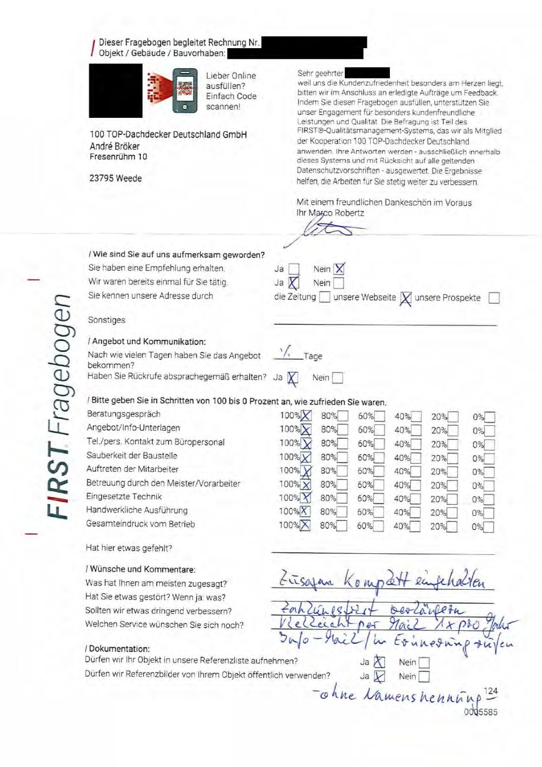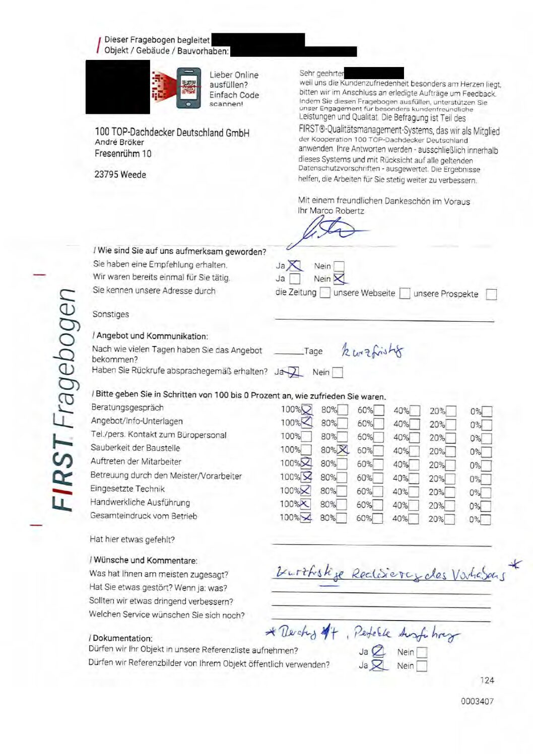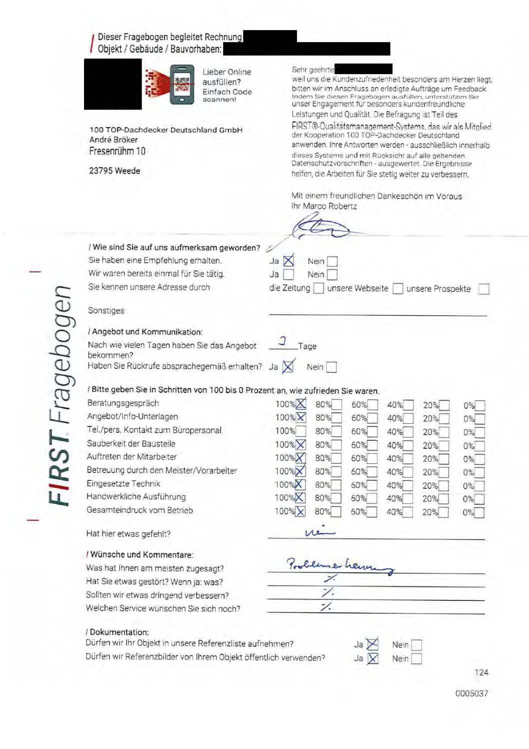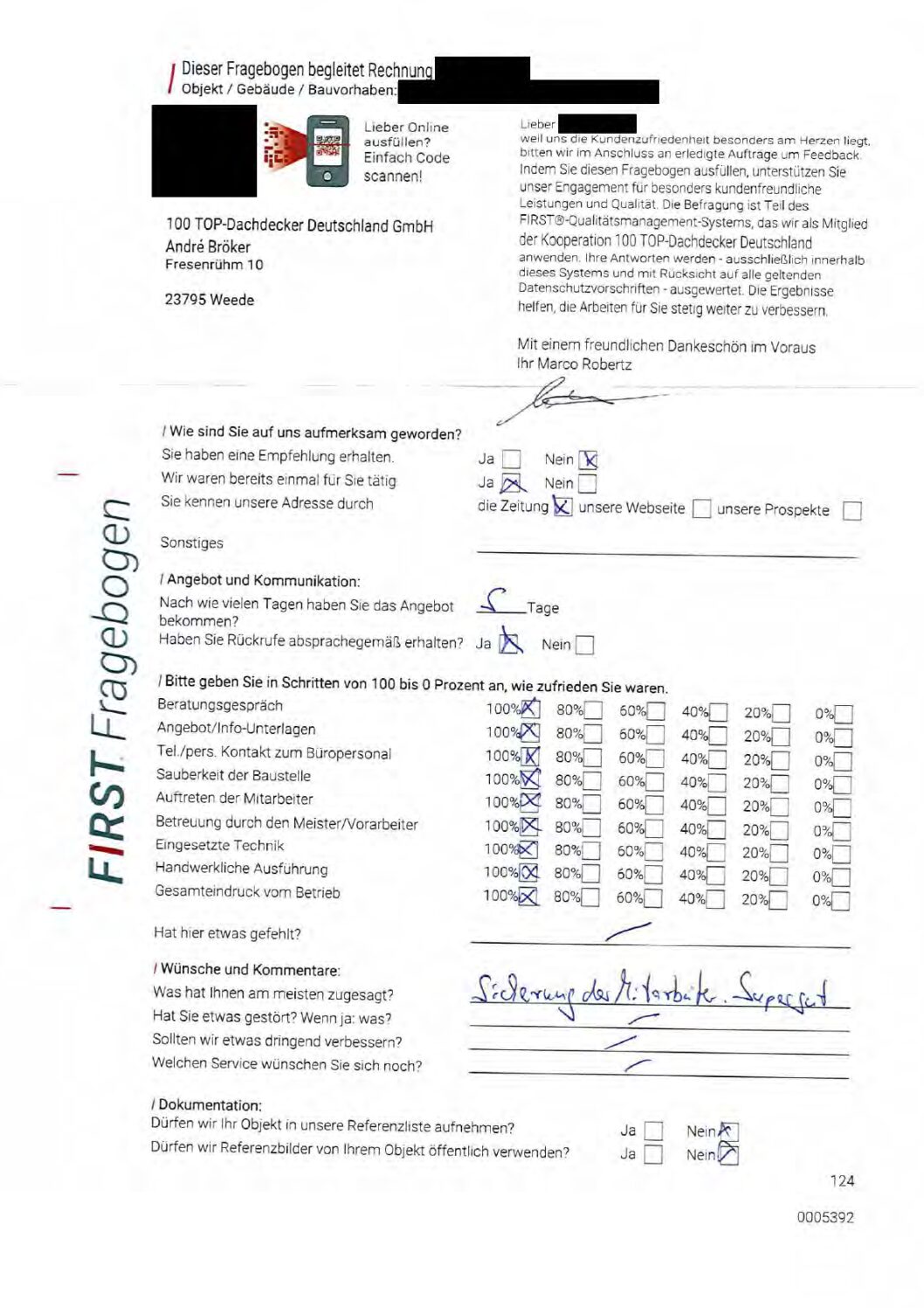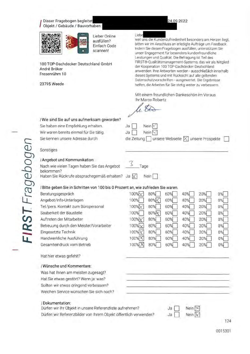 P.S. Wir haben ausnahmslos jeden Fragebogen hochgeladen, den Kunden beantwortet an die 100 Top Dachdecker Deutschland GmbH gesendet haben.