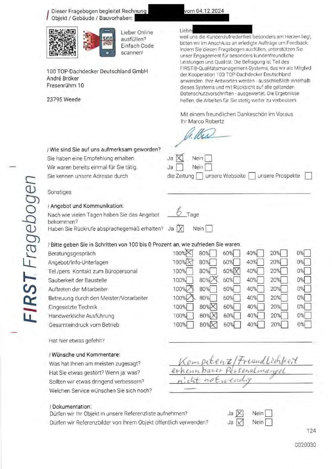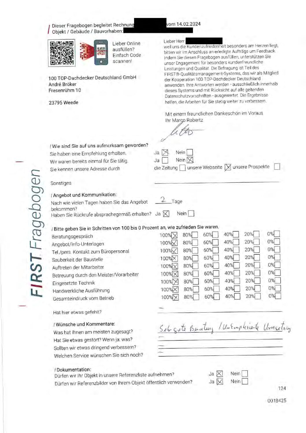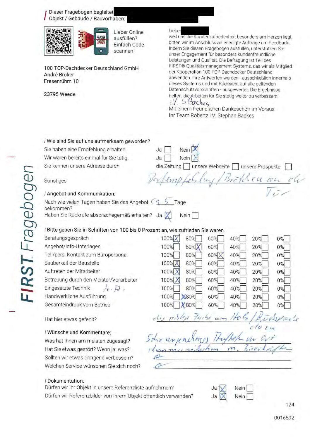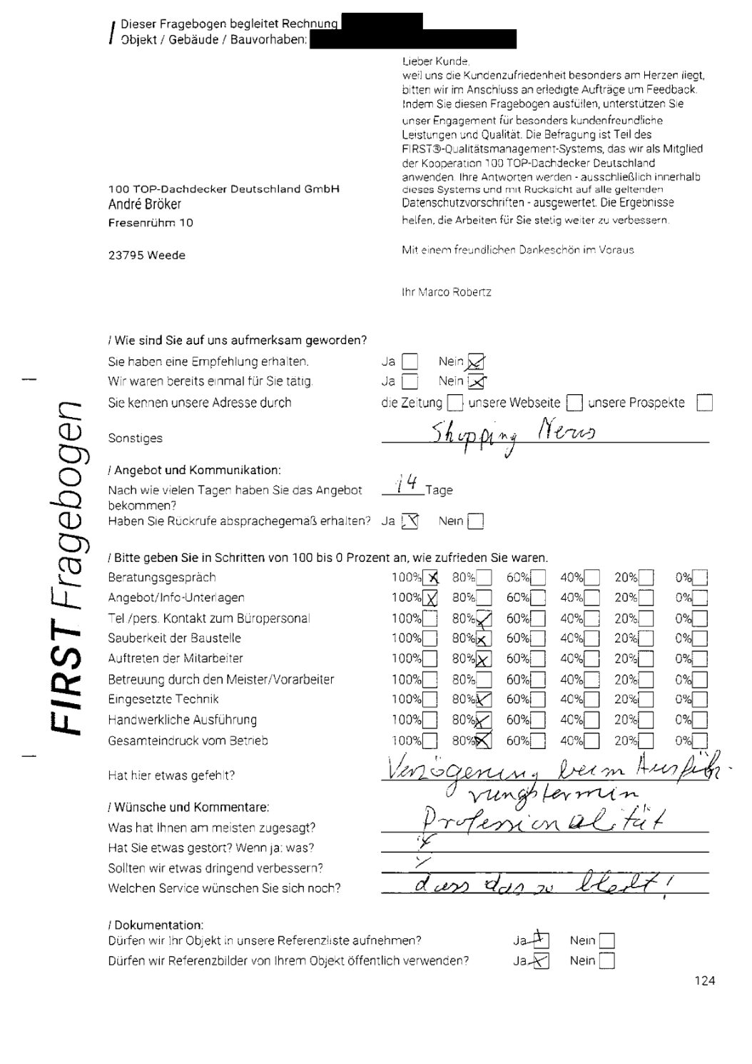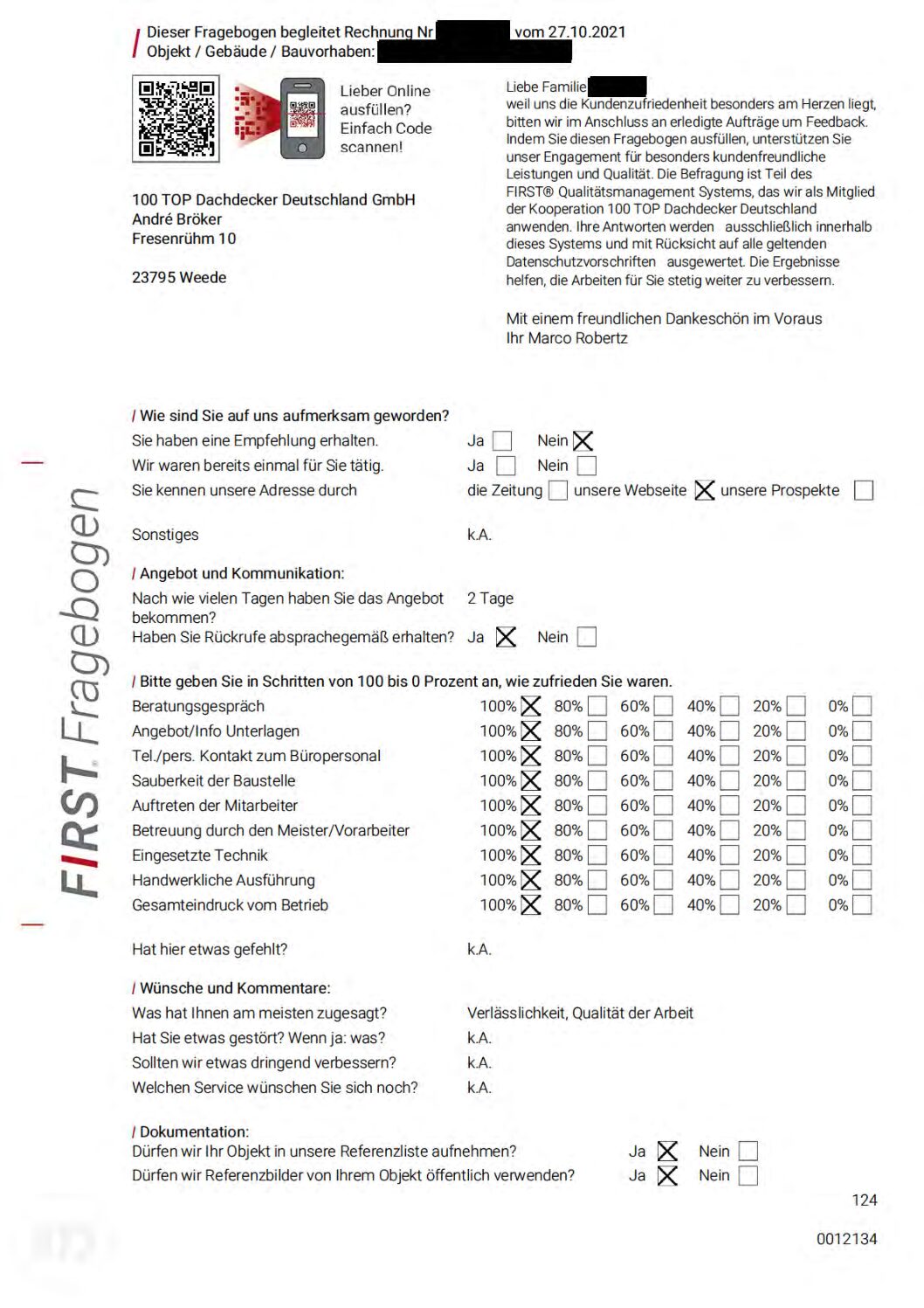 P.S. Wir haben ausnahmslos jeden Fragebogen hochgeladen, den Kunden beantwortet an die 100 Top Dachdecker Deutschland GmbH gesendet haben.
