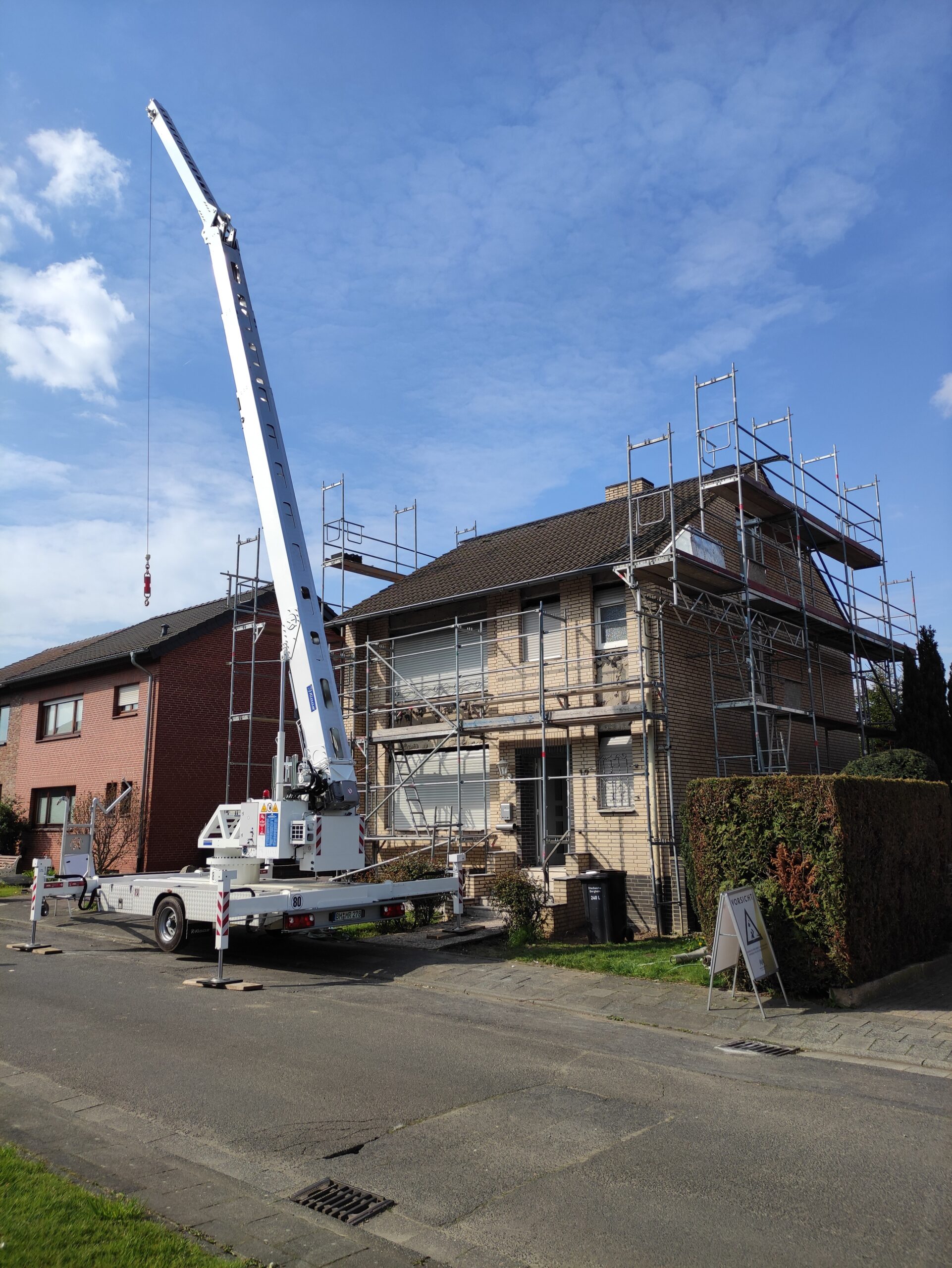 Von der Abstimmung mit Ihren Nachbarn über die Koordination des Gerüsts bis hin zum passenden Stellplatz für unsere Technik kümmern wir uns um die gesamte Baustelleneinrichtung.